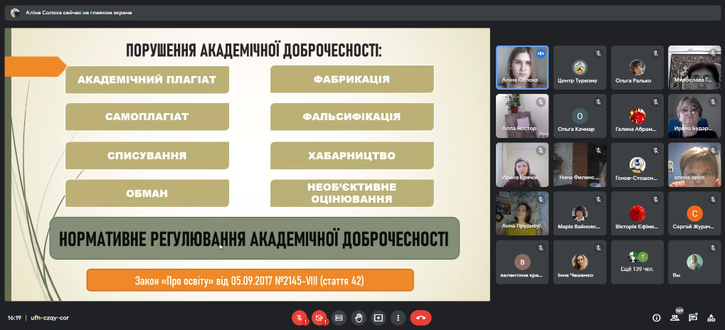 Тему академічної доброчесності підняла Аліна Солоха, культорганізатор організаційно-масового відділу (з питань роботи з талановитою молоддю та МАН) КЗ «Центр туризму» ЗОР.
