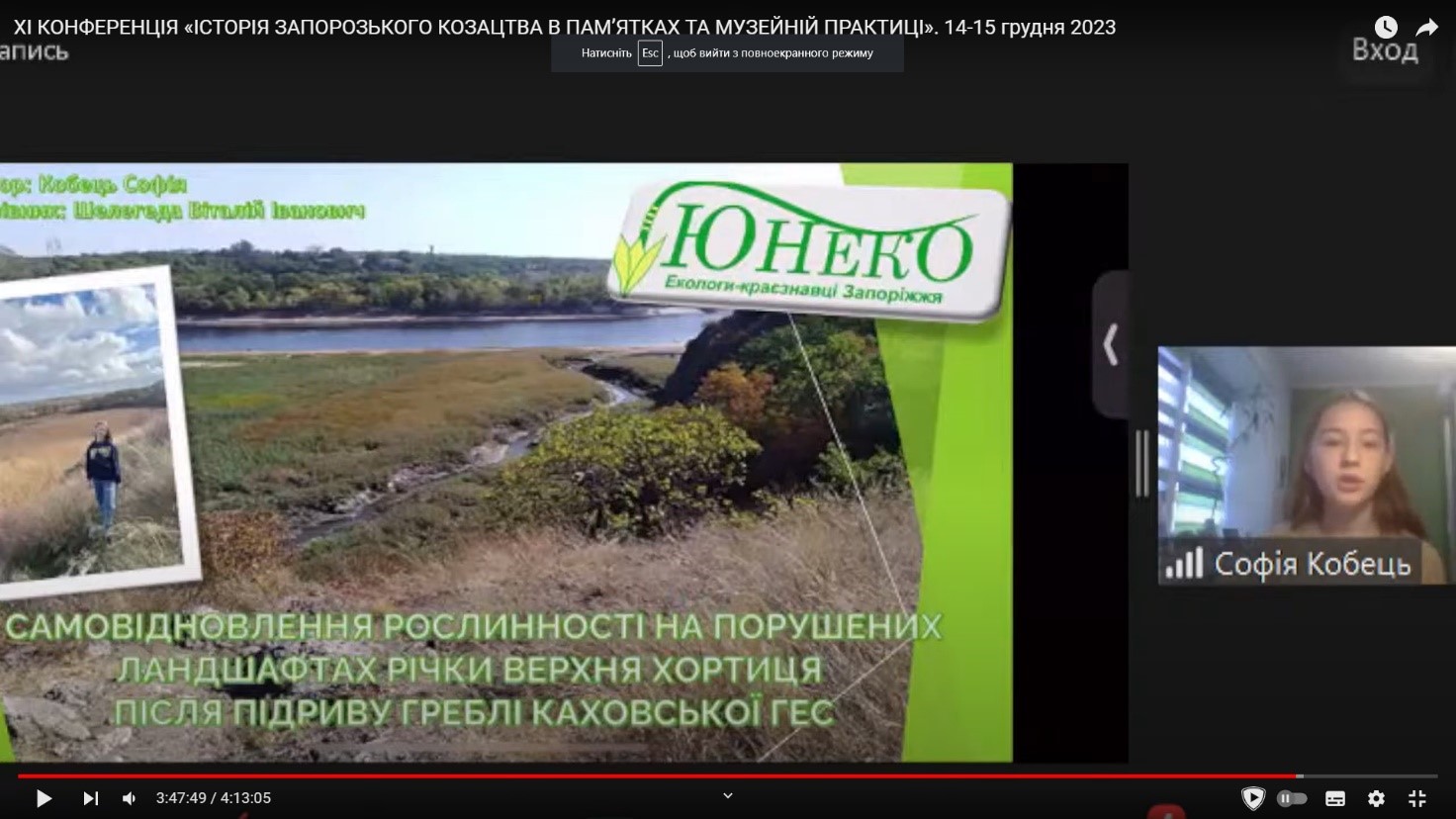 - «Самовідновлення рослинності на порушених ландшафтах річки Верхня Хортиця в районі м. Запоріжжя після підриву греблі Каховської ГЕС»;