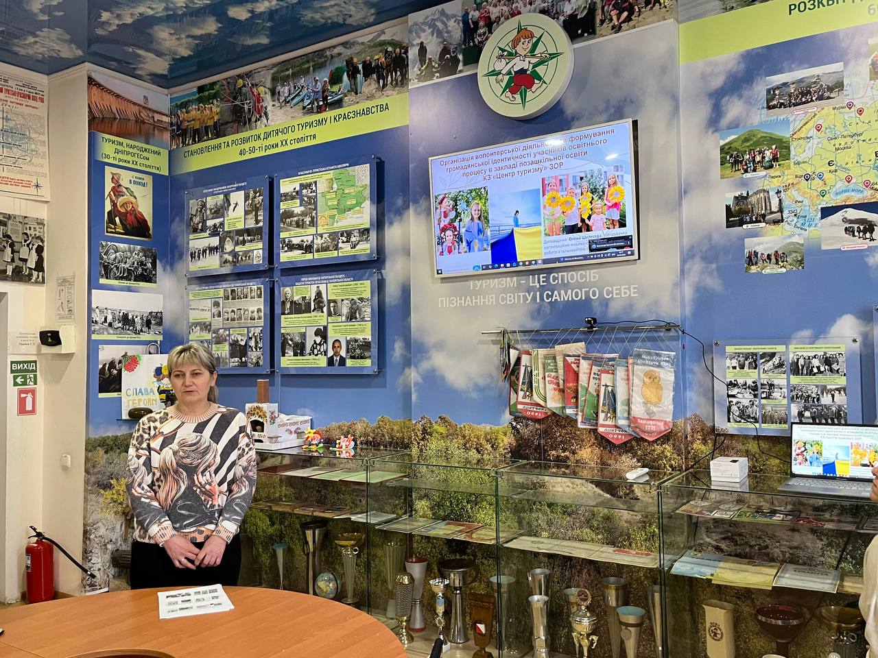 Шелегеда Олена - керівник гуртка-методист «Екологічне краєзнавство», з доповіддю: «Організація волонтерської діяльності та формування громадянської ідентичності учасників освітнього процесу в КЗ «Центр туризму» ЗОР».