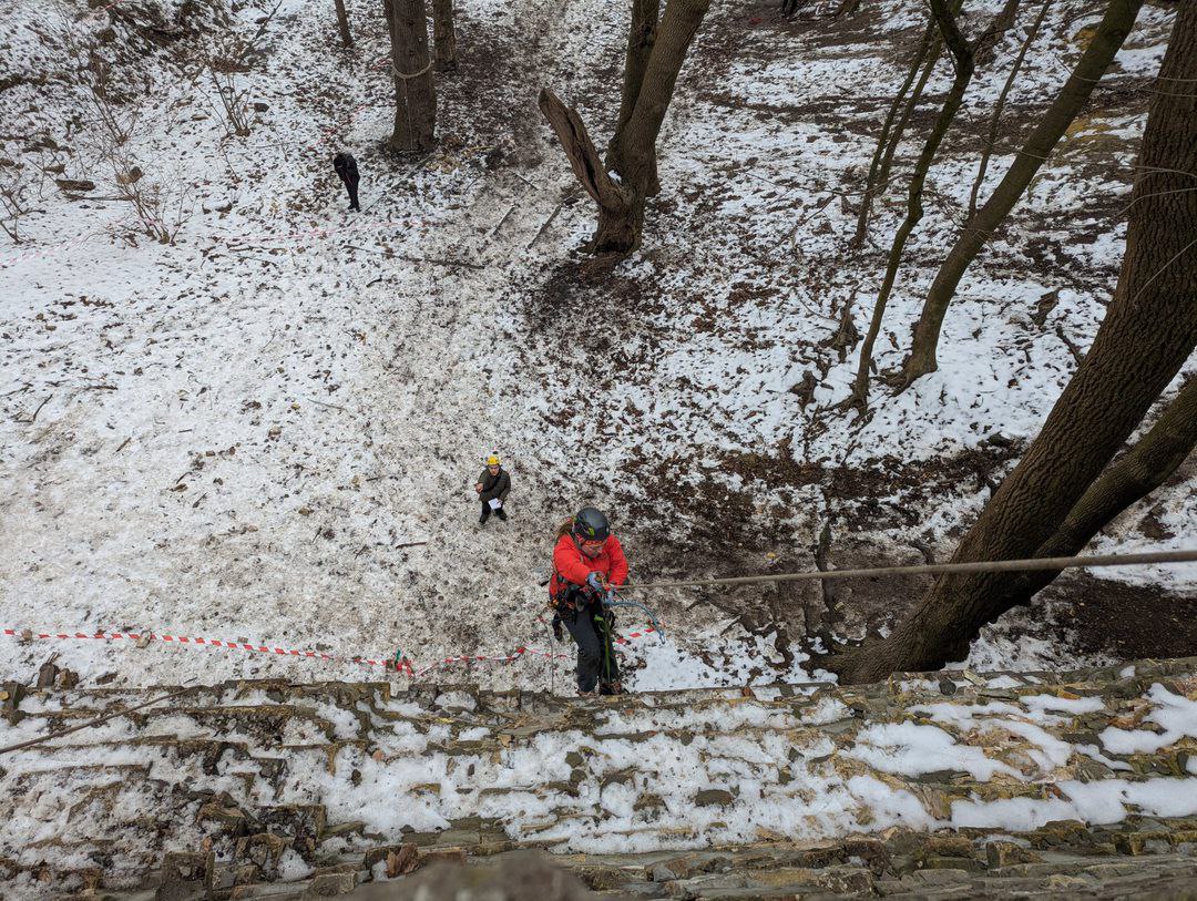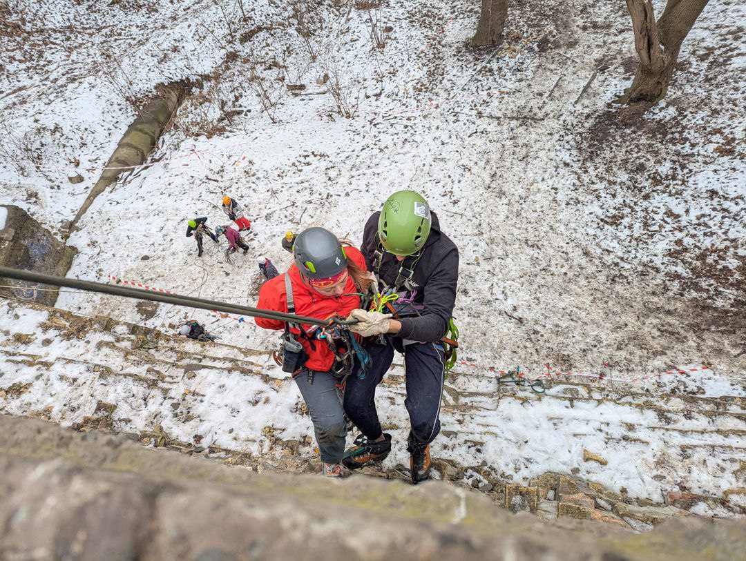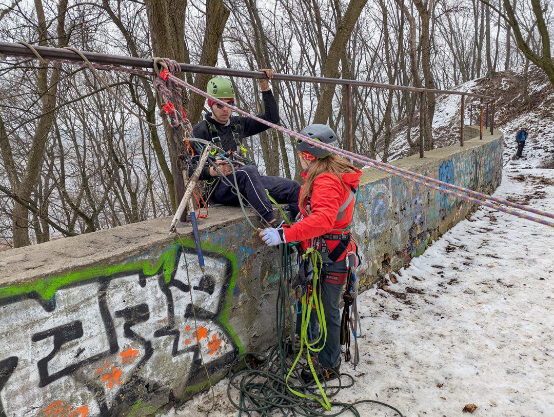 - Підйом по «льодовому» схилу зі зміною лідера, учасники долали більше 100 м підйому технікою «в три такти»;