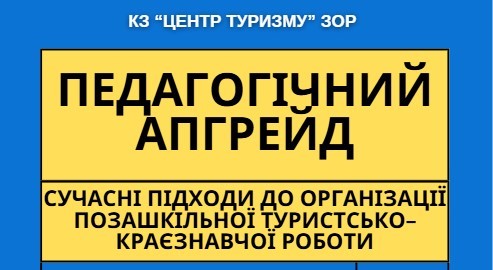 16 січня 2026 року у змішаному форматі комунальним закладом «Запорізький обласний центр туризму і краєзнавства, спорту та екскурсій учнівської молоді» Запорізької обласної ради на базі Громадського центру Українського Червоного Хреста в м. Запоріжжя був проведений захід «Педагогічний апгрейд: сучасні підходи до організації позашкільної туристсько-краєзнавчої роботи».